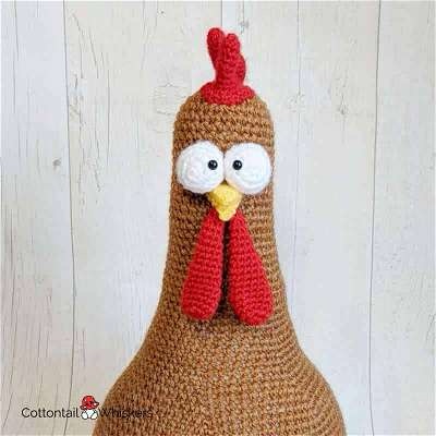 This is a pattern from Cottontail and Whiskers – Charlie the Chicken door stop.