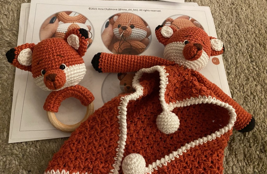 Returning to my story, the turning point when I really started to ‘get good’ was about and two and a half years ago when I followed my first pattern. It was a fox rattle and snuggly for a friend’s baby. I mean, could have started with something a little easier, but why do things in halves especially when life isn’t the greatest. Honestly, still proud with how these turned out. Thinking about it, a review of this pattern would be a good idea at some point.