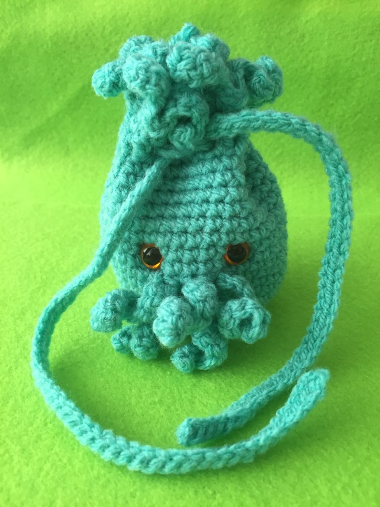Shameless plug time, my Cuthulu dice bag pattern is now available in my Ribblr store! or a free lite version is also available on my blog here! The octopus dicebag will also be avalible soon, with a whole new level of dicebag being avalible towards the end of the year.