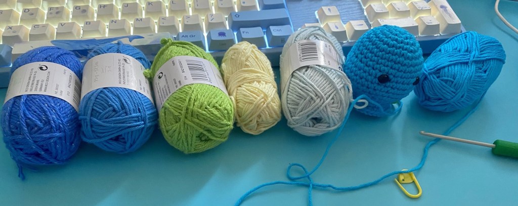 I made this little chap using the Rico cotton yarn and a 3mm hook, with the cotton sparkle yarn for the tail. This created an amigurumi which was around 6 inches tall. However if you use a heavier weight yarn with a larger hook this would probably create a nice 8-10” toy for someone young at heart, especially if you can or like working in fuzzy or velvet yarn.