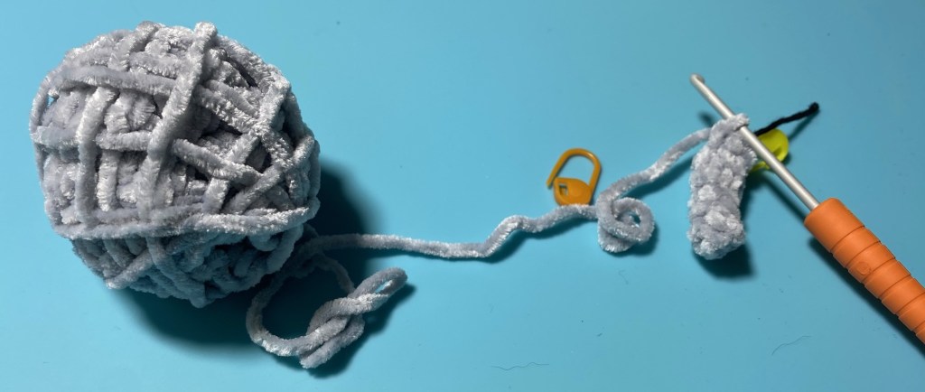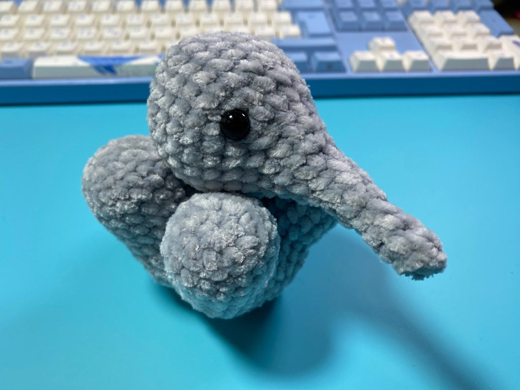 This little elephant is made using tiny chenille yarn, a 3mm hook and a paperclip. The pattern was relatively easy to make and there is not much sewing involved, I would peg it at an advanced beginner into intermediate pattern as it mainly uses single crochet but when you attach the legs together it can be a bit complicated.